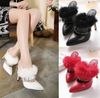 Fashion Rabbit Fur Tassel Stiletto Heel Point Toe Slipper Pumps