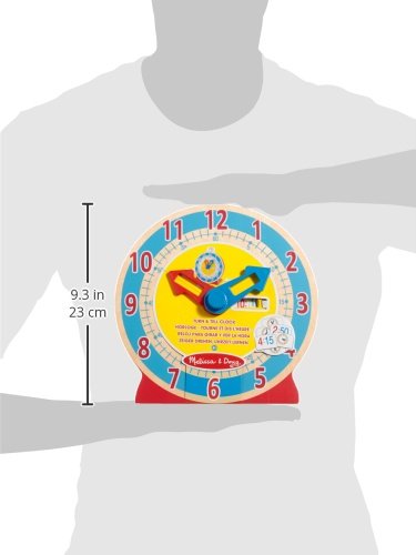 Perfect for kids who are ready to learn to tell time, this learning clock features hands that rotate with a gentle click, marking off the minutes as they go. The detailed clock face has large red numbers to match the hour hand, small blue numbers to match the minute hand, and a segmented color disk to help kids visualize "quarter past" and "half past." Also included are 13 double-sided time cards for practice: Place one in the holder at the top of the clock, then match the numeric or analog time shown by moving the clock hands to their proper position. Slide open the "digital clock" window to check the answer! Then place the cards back in the storage slot at the back of the clock for neat and tidy storage.Feature