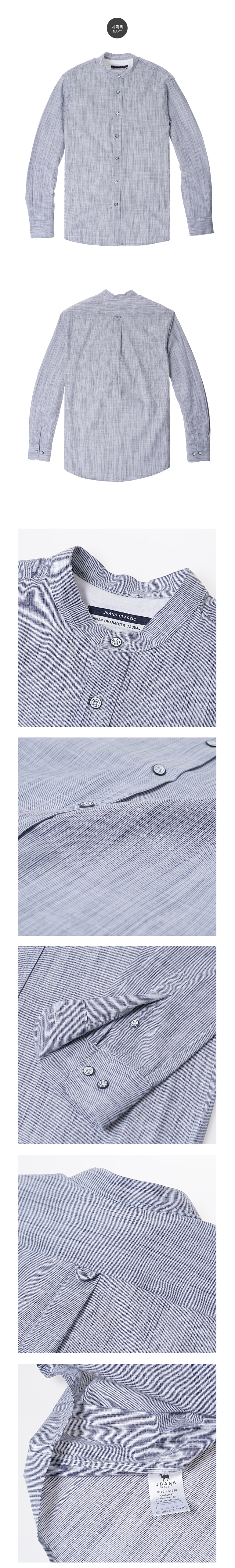 시원한 느낌의 잔스트라이프 차이나넥 셔츠입니다.