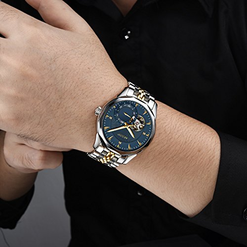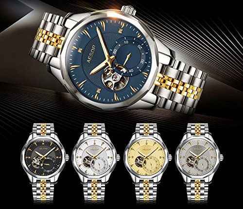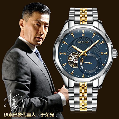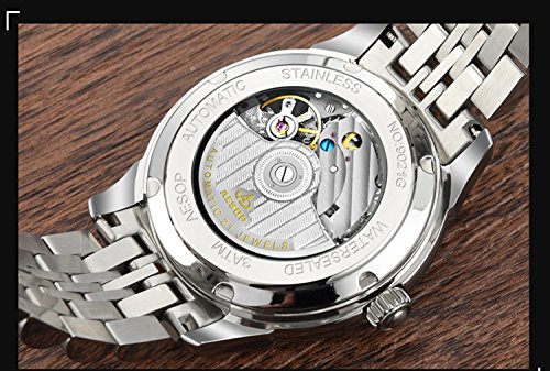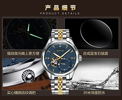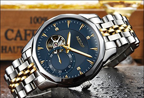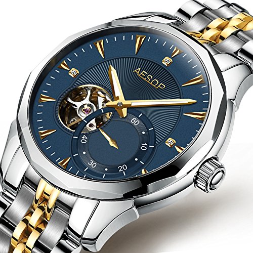 이솝 럭셔리 손목시계 맨즈 스켈리턴 사파이어 실버블루다이얼 스테인레스 스틸 방수 자동기계 손목시계relogio 사내답다