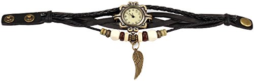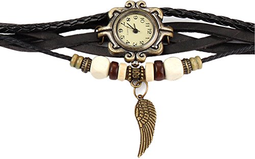 -. Title : Bohemian Style [Retro] Handmade Leather [Angel Wing] Wrist Watch. Beautiful, Fashionable [Luxury] & Stylish [Weave Around] Wrap Watch Bracelet For Women, Ladies, Girls- Black