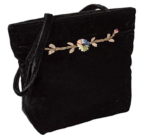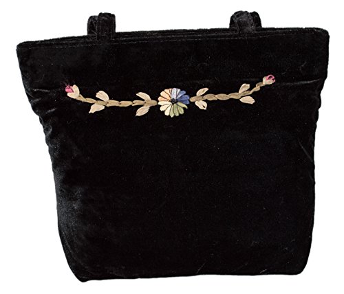 -. Brand : HatQuarters -. Color : Black Velvet -. Department : womens -. EAN : 0647095890507 -. Feature : Cute, Medium Size Vintage Double Handle Purse Created from Soft Velvet Fabric / Hard Bottom Purse Features Trendy Floral Design for Subtle Style / Antitheft Bag Keeps Belongings Secure with Durable Top Zipper to Last a Long Time / Long Strap Bag Measures: 11 Inches Tall, 13 Inches Wide, Straps Measures: 11 Inches / Interior Features: One Zip Pocket to Organize Small Items. Makes a Great Gift! -. PackageQuantity : 1 -. ProductGroup : Shoes -. ProductTypeName : HANDBAG -. Size : Medium -. Title : Black Velvet Long Strap Shoulder Bag, Vintage Rose Embroidered Top Handle Purse -. UPC : 647095890507
