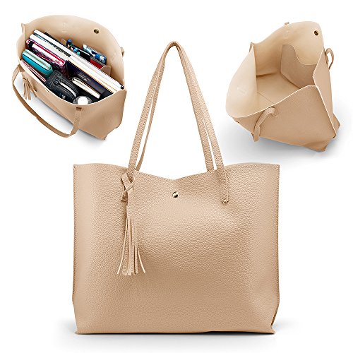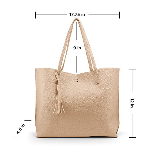 -. Feature : SIMPLE AND ELEGANT DESIGN: Stylish and elegant tote shoulder bag/purse with a simple tassel for decoration. Great for travel, business, the gym, or anywhere. / QUALITY MATERIAL: Made of high quality PU leather material that's light weight and comfortable to carry. / SPACIOUS COMPARTMENTS: Large main compartment with magnetic snap closure to safely store a variety of personal items such as wallet, tablet, phone, books, and other essentials. One interior open pocket for small accessories within hand's reach. / CONVENIENT SIZE: Our handbag is large enough to carry anything you need, yet at the same time portable. Approx. H12 x L17.75 x D4.5 in.; drop length approx. 9 in. / CUSTOMER SATISFACTION: If you're not 100% satisfied with our handbag, you can return it for a full refund, no questions asked! We take P.R.Ide in our customer service, and we will do whatever it takes to make you happy.