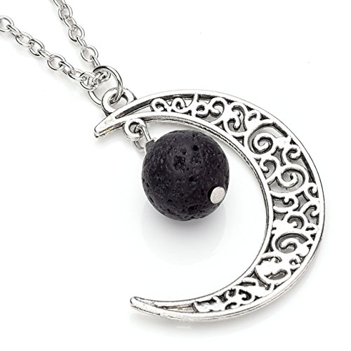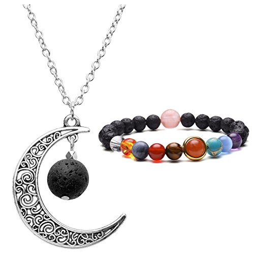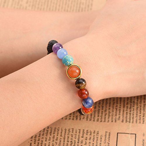 Top Plaza Women Aromatherapy Lava Rock Stone Essential Oil Diffuser Natural Gemstone Pendant Necklace Unique Golden Tone Solar System Nine...
