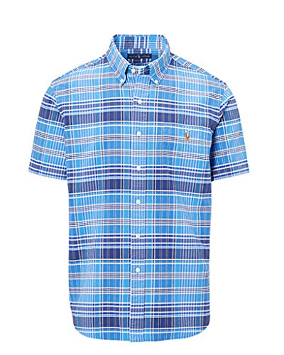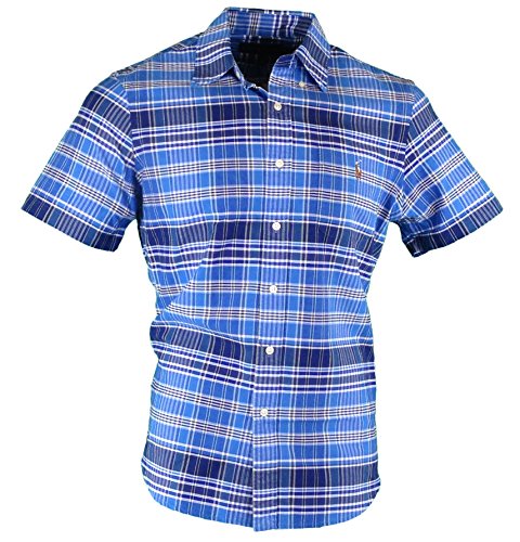 Polo Ralph Lauren Men's Cotton Short Sleeve Plaid Oxford Shirt, Blue/Navy (Small)