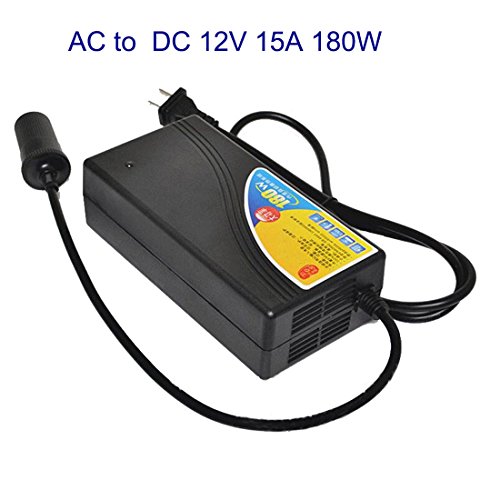 Home Usage AC-DC 12V 15A 180W Adapter Converter with Car Cigarette Lighter Socket for Car Vacuum/RV Cooler/Seat Cushion Massager