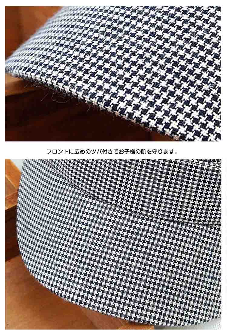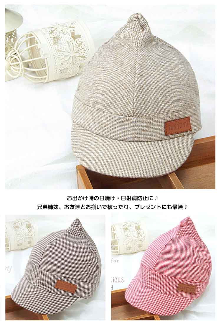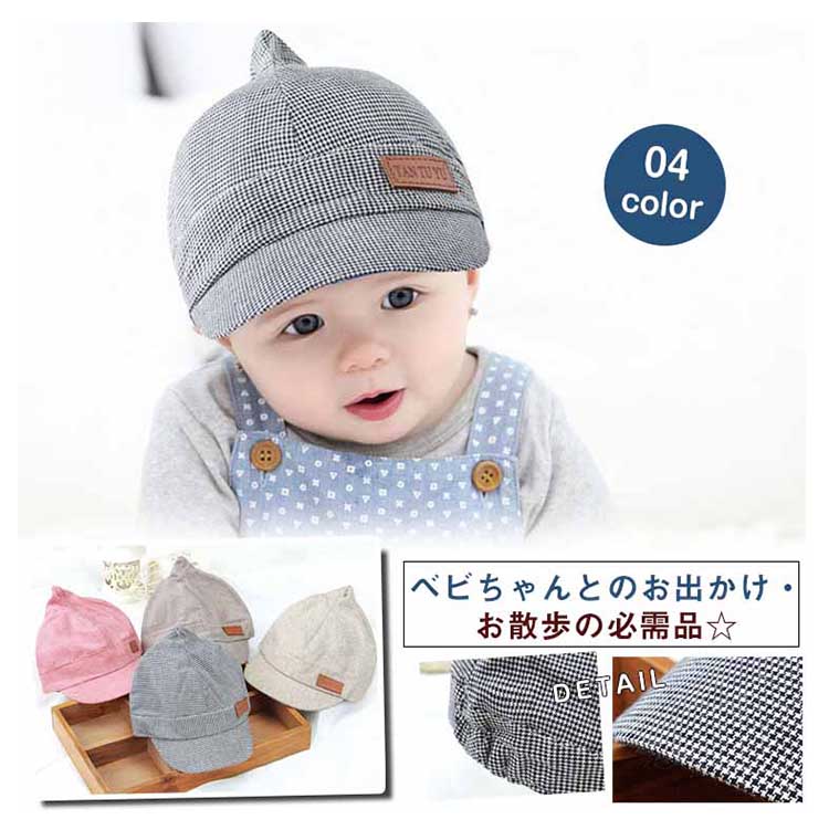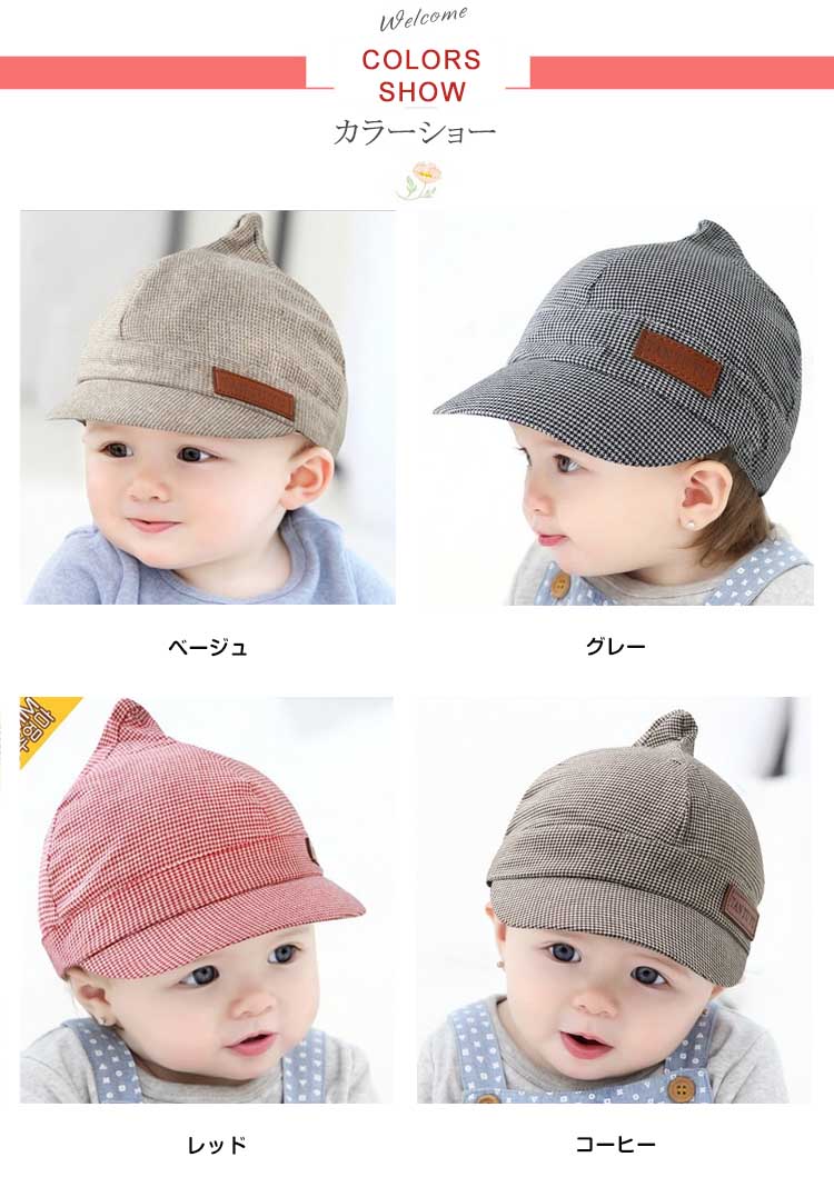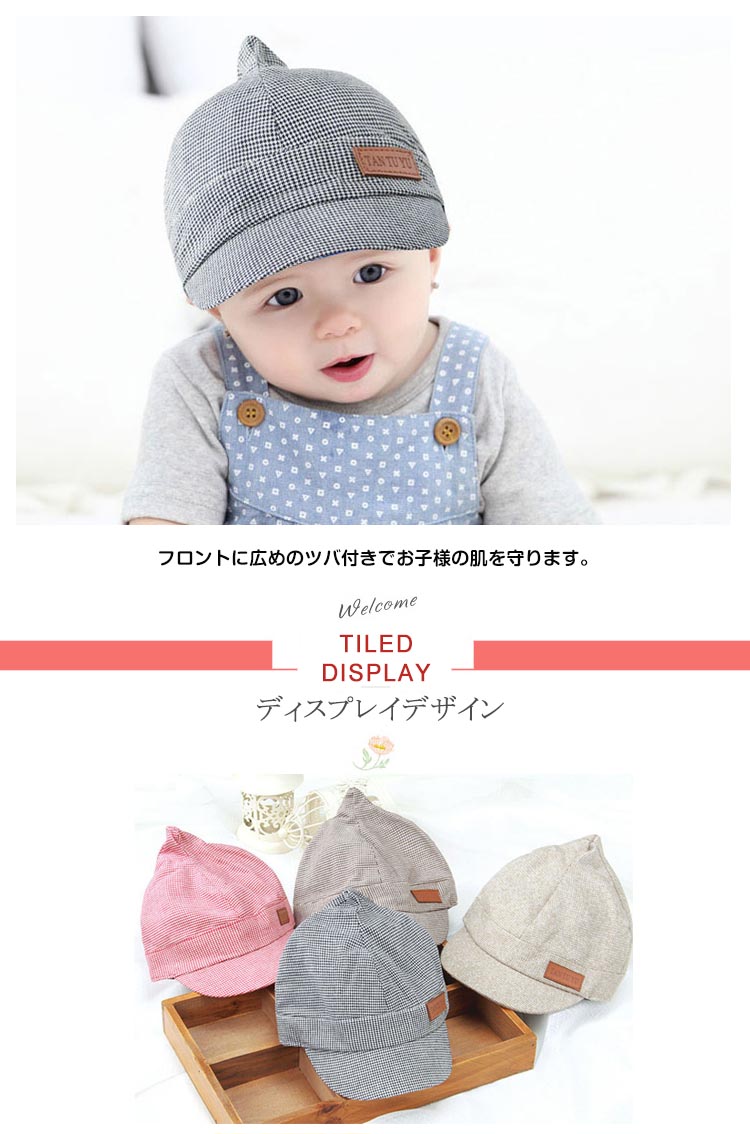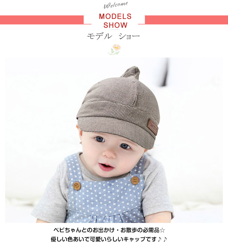 | ベビちゃんとのお出かけ・お散歩の必需品☆優しい色あいで可愛いらしいキャップです♪♪可愛いチェック柄もコーデのポイントになりますよ。通気性の良い丈夫な生地感でオールシーズン活躍☆後ろ部分がゴム入りになって締め付け感なくベビーも大満足◎フロントに広めのツバ付きでお子様の肌を守ります。お出かけ時の日焼け・日射病防止に♪兄弟姉妹、お友達とお揃いで被ったり、プレゼントにも最適♪ | |