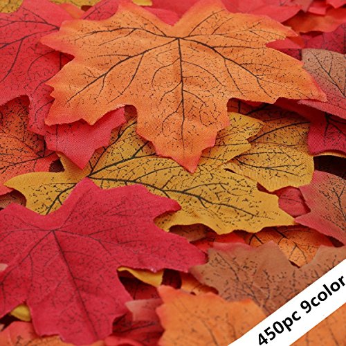 Package Contains 450 assorted mixed fall colored artificial maple leaves(9 color)