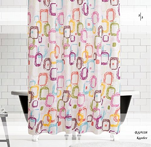 Multicolor Shower Curtain- Geometric Design Watercolor Effected Abstract Art Bathroom Accessory with Hooks - 72 x 78 Inches - Purple Blue Yellow