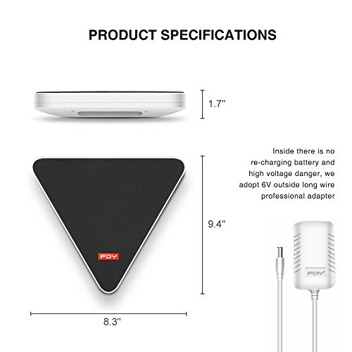 No Battery& Wall Mounted: Unique wall mounted design,can be installed on the wall of parlor,bedroom,dining room,corridor,kitchen and toilet etc to save home living space. No battery inside and there is no high voltage danger, adopt 6V outside long wire professional adapter.