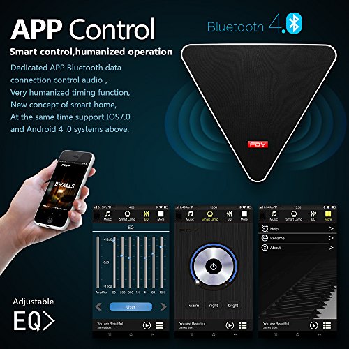 App Bluetooth smart Speaker: Handsfree, control on/off music,Alarm clock,music EQ,home nightlights,music volume, bluetooth/radio..etc function via FDY speakers.Free your hands,enjoy music as you like.