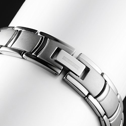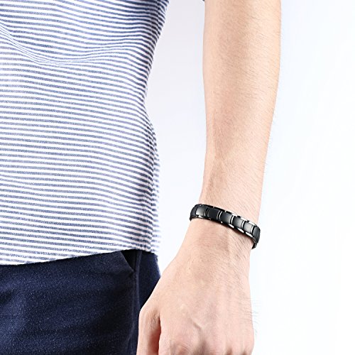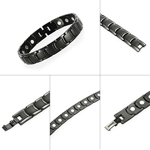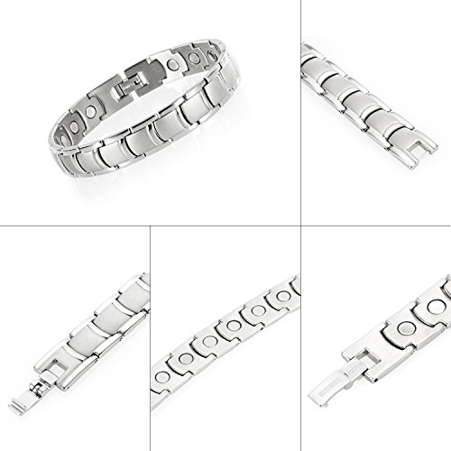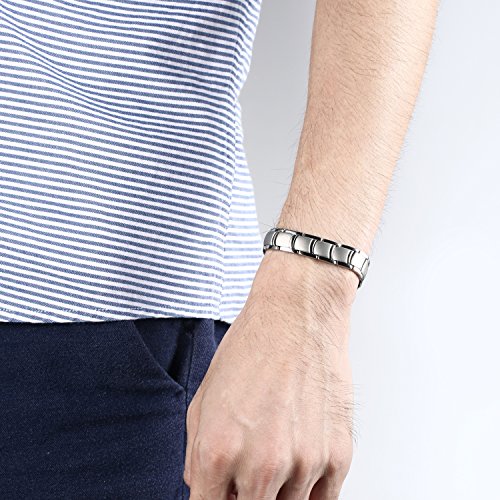 -. Feature : EXTRA STRENGTH: Powerful 3500 Gauss Magnets in each link. Don't waste time with weaker magnets or 4-element bracelets. Reduce pain, fatigue & muscle tension. Improve blood circulation, energy, balance, and sleep / PURE TITANIUM: Handcrafted for the highest quality. Strong Clasp that stays put. Titanium is low maintenance! Length: 21cm; Width: 1.2cm / 100% HYPOALLERGENIC: Guaranteed to be Lead & Nickel free; No more allergic reactions commonly found with stainless steel and copper bracelets & bangles / STYLISH DESIGN: So stylish that no one would even suspect it is therapeutic! Designed to look great on both men and women. Different colors to match any attire, style & mood / ELEGANT & CONVENIENT: Gorgeous gift-ready presentation with link removal tool (Instructions Included!) to adjust size in the comfort of your own home