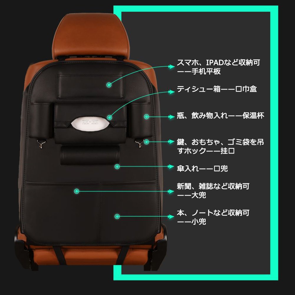 Utilizing the space at the rear of the seat back, the daily accessories such as tissues, umbrellas, and mobile phones that were left in the car are stored together and the interior of the car becomes beautiful at once.