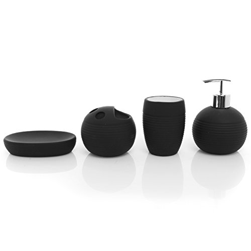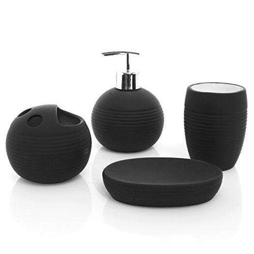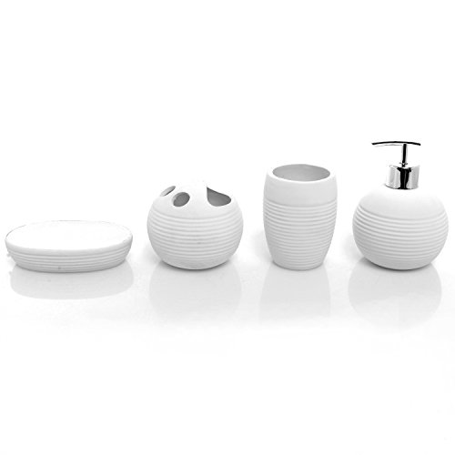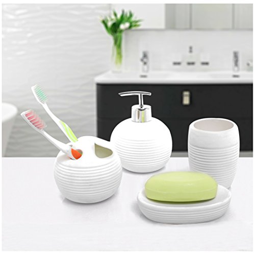 -. Title : 4 Pc Modern Ceramic Bathroom Accessories Set w/ Soap Dispenser, Toothbrush Holder, Tumbler, Soap Dish