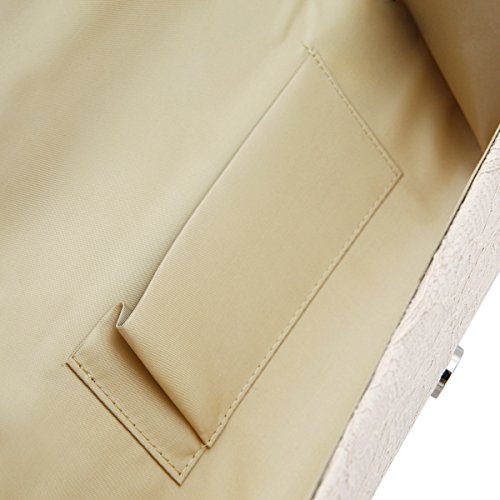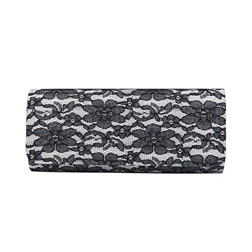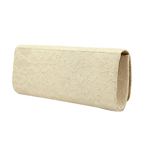 This premium quality evening clutch is both elegant and stylish. Unique and pretty full floral lace fabric. Fully lined with magnetic-flap closure and inner wall pocket. Removable hideaway shoulder chain strap with 21" drop. Stunning, functional and versatile. The size is 10" (L) x 4.25" (H) x 2.25" (W). Elegant design and luxury feel. A must have accessory for the perfect night out.Feature