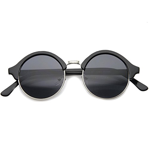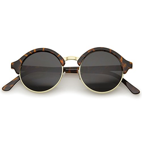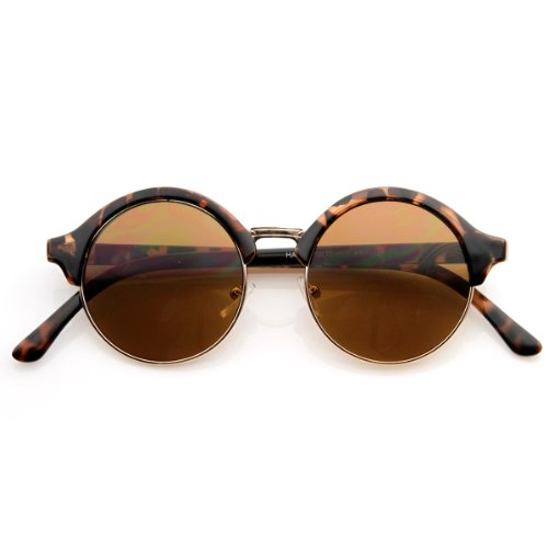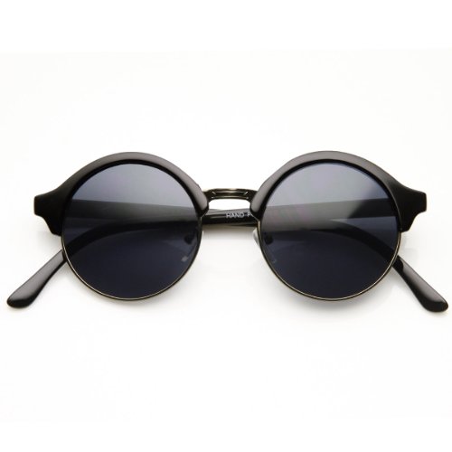 Vintage inspired half frame circle horn rimmed shape that stays true to the classic and iconic look. Frame is made with an acetate brow and arms, metal wire lens lining and metal nose bridge. Features metal hinges, English style nose pieces, and dark-tinted glass UV protected lenses.