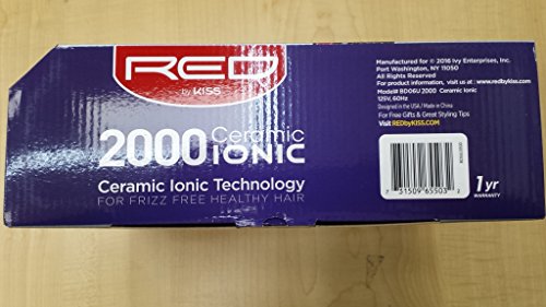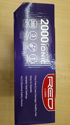 Red by Kiss 2000 Ceramic Ionic Hair Blow Dryer 2 Bonus Detangler Pik included Professional 3 Setting Heat Speed