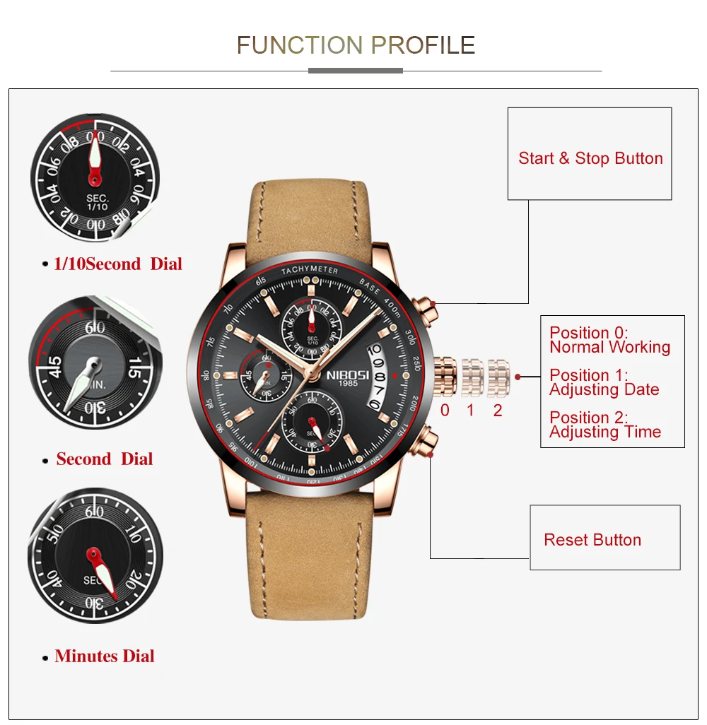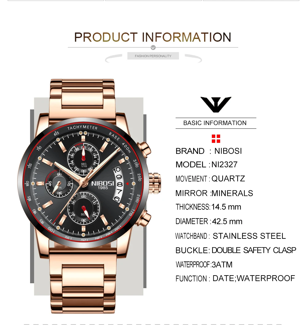 Stock of montre homme:NIBOSI Original Men's Watches