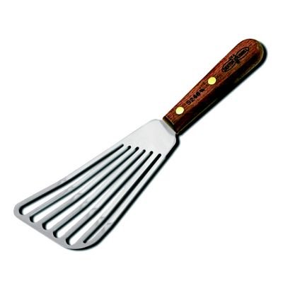 Studio : Dexter Russell Cutlery Publisher : Dexter Russell Cutlery Product Description This Traditional™ Slotted Fish Turner has a stainless steel blade. The rosewood handle is held securely to the blade with brass compression rivets.Item #19810 Model #: S246 1/2-PCP Made in USA Brass Compression Rivets Secure Handle to Blade Rosewood Handle Blade Length: 6.5" Blade Width: 3" Handle Length: 4.5" Overall Length: 11" Stainless Steel Blade 204506 0