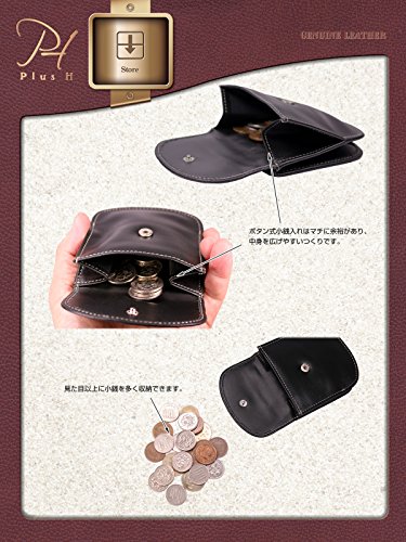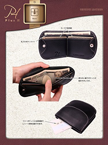 원본상품명: プラスエイチ(Plus H) コンパクト財布 メンズ レディ?ス 小?入れ付き 二つ折り 本革 札入れ カ?ド入れ レザ? PH8061 (ブラック)