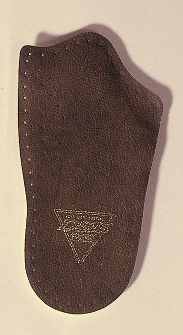 【使い方】 人工皮革を上にして左右を確認し、かかと部をそろえて、土ふまずに突起している部分が合うように調整しながら両面テープで靴底に固定します。あらかじめ、靴の土ふまず部にアーチパッドがある場合は、取り除いてお使い下さい。 |