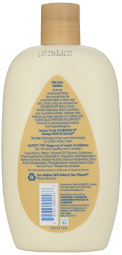 This unique lotion combines oatmeal, an ingredient long known for its moisturizing and skin-soothing properties, with gentle emollients and the comforting essence of vanilla. Non-greasy and fast absorbing, it moisturizes for 24 hours and helps maintain skin's natural moisture. Johnson's Vanilla Oatmeal Baby Lotion is allergy-tested and clinically proven mild, so it can be used on all skin types. Use everyday for baby soft skin.Feature