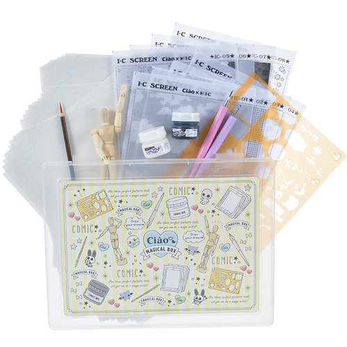 -. Feature : 【内容】 1.ポーズ人形(タテ150mm×ヨコ45mm) 2.Gペン先 3.Gペン軸(ピンク) 4.原稿用紙A4サイズ31枚 5.丸ペン先 6.丸ペン軸(パープル) 7.面相筆 8.ホワイトインク 9.ブラックインク 10.複製原画(6枚) 11.ちゃおコミックプレミアム レッスンノート 12.アイシースクリーンA5サイズ(8枚) 13.ちゃおオリジナル テンプレート 14.ちゃおオリジナル クリアケース