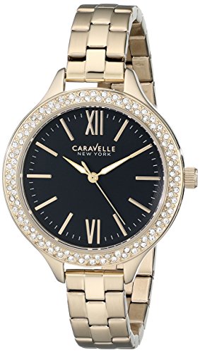 -. Binding : Watch -. Brand : Bulova -. Color : black -. Department : womens -. EAN : 0042429507463 -. Feature : Quartz movement / Mineral flat crystal / Black dial / Stainless steel case and bracelet / Water resistant to 99 feet (30 M): withstands rain and splashes of water, but not showering or submersion -. Label : Caravelle New York -. Manufacturer : Caravelle New York -. Model : 44L126 -. MPN : 44L126 -. PackageQuantity : 1 -. PartNumber : 44L126 -. ProductGroup : Watch -. ProductTypeName : WATCH -. Publisher : Caravelle New York -. ReleaseDate : 2013-12-17 -. Studio : Caravelle New York -. Title : Caravelle New York Women's 44L126 Analog Display Japanese Quartz Yellow Watch -. UPC : 042429507463