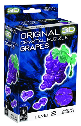 -. Binding : Toy -. Brand : Bepuzzled -. EAN : 0023332309245 -. Feature : The Grapes 3D Crystal Puzzle from BePuzzled is a sleek, translucent puzzle with 41 unique interlocking pieces / Take puzzling to a whole new dimension with this fruity crystal puzzle / Enjoyable to work on, challenging to complete and beautiful to display / This 3D puzzle has a difficulty level of 2 and is fun for puzzlers age 12 and up / Approximate assembled size = 4-1/2" x 2-1/4" x 2-3/4" -. IsAdultProduct : 0 -. ItemPartNumber : 30924 -. Label : University Games -. Manufacturer : University Games -. Model : 30924 -. MPN : 30924 -. PackageQuantity : 1 -. PartNumber : 30924 -. ProductGroup : Toy -. ProductTypeName : TOYS_AND_GAMES -. Publisher : University Games -. Studio : University Games -. Title : Original 3D Crystal Puzzle - Grapes -. UPC : 885659452024 -. Warranty : No Warranty