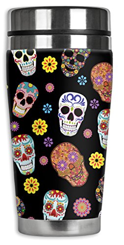 Mugzie 949-MAX "Sugar Skull Toss" Stainless Steel Travel Mug with Insulated Wetsuit Cover, 20 oz, Black