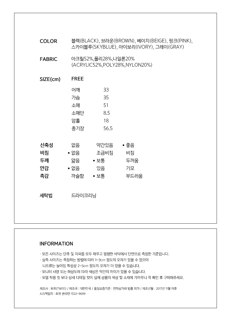 적당한 두께감으로 F/W시즌 활용도 높게 연출하실 수 있으며