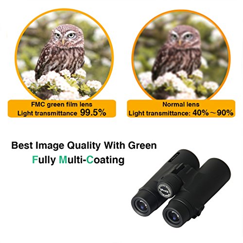 -. Feature : 【10X42 MAGNIFICATION】 -A professional and compact Binoculars, with 331ft/1000yds large field of view and 42-millimeter objective diameter, a Ideal gift for hobbies, like hunting, camping, hiking, watching athletic games, theaters, and much more. / 【NON-SLIP RUBBER ARMOR & WATERPROOF, FOGPROOF】- Soft Texture Grip absorb shock and provides a firm grip. The tight fitting rubber armoring secures grip in all weather conditions. / 【FMC AND BK4 P.R.ISM】- The full multi-layer coating green film with BK-4 P.R.Ism and 6.3° viewing angle, guarantee superior light transmission and brightness. / 【LONG EYE RELIEF BINOCULARS】- a twist-up eyecups design for eyeglasses wearers to feel comfortable. In addition, focus knob is for easy adjustments, simply turning the center dial to match the eye distance gap / 【GUARANTEE】 - 30-Day Money back guarantee and friendly customer service. Be aware of fake and counterfeit products from NON-Oikkei Seller.