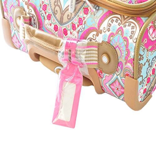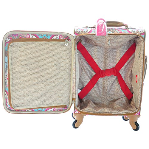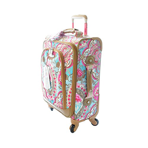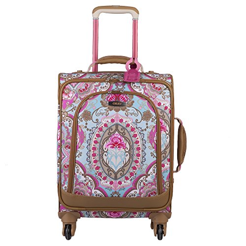 -. Brand : Oilily -. Department : womens -. Feature : Main zipper can be secured with lock (lock not included) / Inside zipper closed main compartment: on lid 1 zipper pocket with mesh / Bottom compartment: elastic strap with buckle to keep garments together, 1 waterproof zipper pocket and 1 zipper pocket with mesh / 1 Front zipper pocket / 1 Extra handle on top and side for easy pick up -. ProductGroup : Apparel -. ProductTypeName : LAGE -. Title : Oilily Rolling Suitcase Travel Lotus Soft Trolley Spinner Small