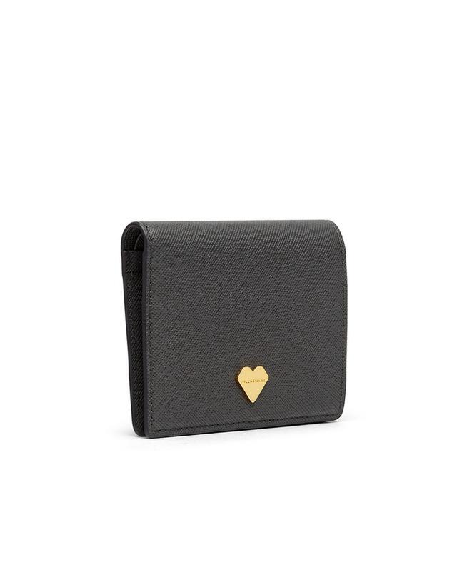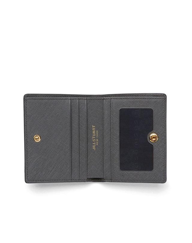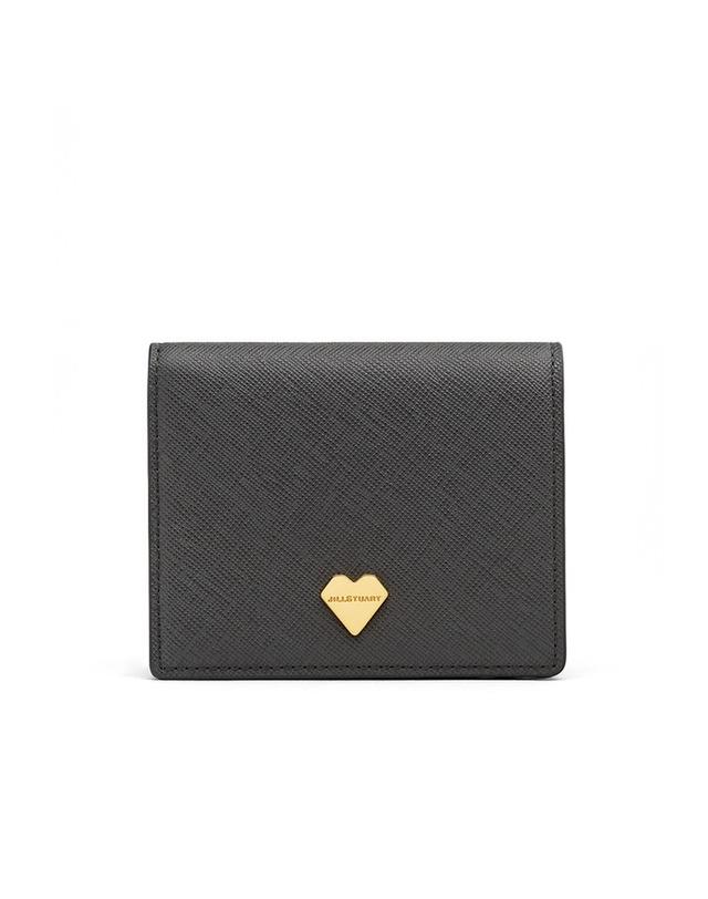 중앙의 하트 펜던트로 포인트를 주었고, 내부 핑크 배색으로 여성스러운 느낌을 살린 2단 반지갑입니다.