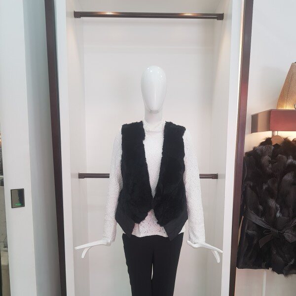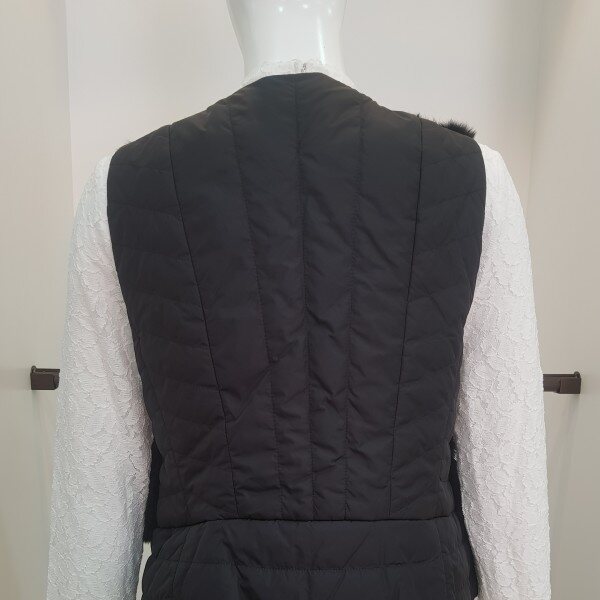 패딩과 렉스 스크랩 믹스 디자인이 포인트인 숏기장 베스트
