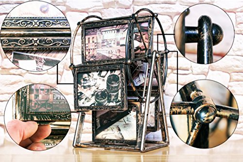 Large Rotating Ferris Wheel Twelve 3.5 x 5 In Picture Frame Vintage DIY Keepsake Windmill Photo Frame New Year Gift for Family, Retro Home Décor