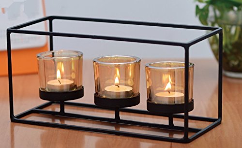 Amber Glass Tealight Holder with Black Metal Stand Candelabra