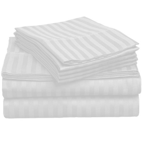 -. Brand : The Great American Store -. Color : White -. Feature : 4-PIECE QUEEN SHEET SET - WHITE ( 1 Flat Sheet, 1 Fitted Sheet and 2 Pillowcases) / 100% EGYPTIAN COTTON - long staple cotton spun into compact yarns, making these sheets incredibly soft and luxurious. Only India uses yarns this nice / Fully elasticized fitted sheet fits mattresses up to 18-Inch deep / HIGH QUALITY CONSTRUCTION - Made with 400 thread count for longevity and luxury. Fabric is pre-shrunk (Sanforized) to protect against shrinkage after washing and drying / LOW P.R.ICE WITH 100% SATISFACTION GUARANTEED - if you would give these anything less than a 5 star review email me and we promise to make it right.ONLY BUY FROM The Great American Store - there are no other authorized sellers of this product -. Label : Scala Home Essentials -. Manufacturer : Scala Home Essentials -. PackageQuantity : 4 -. ProductGroup : Home -. ProductTypeName : HOME_BED_AND_BATH -. Publisher : Scala Home Essentials -. Studio : Scala Home Essentials -. Title : Scala Home Collection - 400 Thread Count 100% Long Staple Cotton 4PC Sheet Set - White Stripe