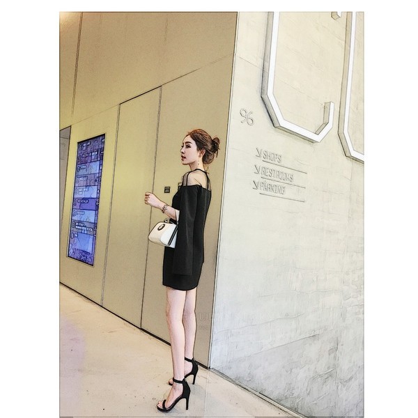 ブラックのパーティ―ドレス。