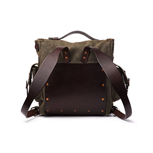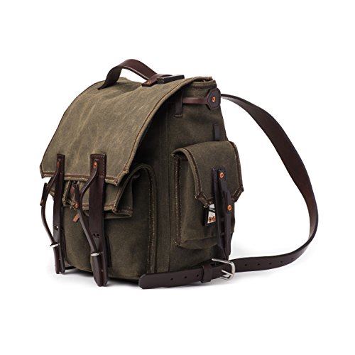 THE MOUNTAINBACK 5 POCKET CANVAS BACKPACK BY SADDLEBACK LEATHER The 5 Pocket Canvas Backpack features two side pockets with secure and quick access pad eye closures and two tall front canvas pockets that can be folded forward, or tucked behind the pockets for extra security. All four exterior pockets have hidden slot pockets behind them for extra storage. The interior panel pocket along the back can hold a tablet or small laptop, while the main compartment is big enough to hold more than enough for a weekend trip. The design also features sewn leather tabs above each side pocket for lashing gear or clipping carabineers, along with a hand-riveted old bull leather panel along the back and bottom for strength and structure. The adjustable leather shoulder straps are designed for comfort on a wide range of body types and all rivets and grommets are reinforced with extra thick old bull leather for extremely high tear resistance at all stress points. QUALITY FROM BEGINNING TO END 1. THE BEST PEOPLE - The quality of our canvas backpacks is only as good as the people that make them. We only hire the best sewers, leather workers, and quality control folks. 2. TANNING PROCESS - Saddleback only uses premium, Vegetable-Tanned Old Bull leather from reputable, environmentally friendly tanneries in Old Mexico on itIs Mountainback line of canvas bags. 3. THE CANVAS - We use the best, most expensive, 24 oz. waxed canvas produced in Scotland from the best canvas makers in the world. 4. MARINE GRADE POLYESTER THREAD - Our thread quality cannot be emphasized enough. UV and saltwater resistant, you'll find the same thread used in boat sails. 5. NO BREAKABLE PARTS - Our hardware is Surgical Grade Stainless Steel 316. You will not find snaps, magnets, zippers, Velcro or wheels, which all eventually break, on our canvas designs. 6. 100 YEAR WARRANTY - If this canvas briefcase goes before you do, we'll fix it or replace it for free. 0 |