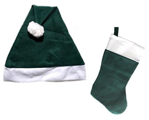 Christmas Felt Hat & Stockings Set (1-Piece Each) (Green) | Christmas Tree Hanging Decor, Santa Festival Ornaments, Party Accessories, Christmas Gifts