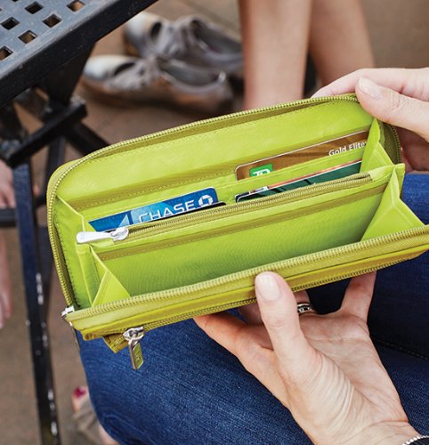 The quick-step has 14 card slots inside its main interior, and four slim pockets for bills, receipts, and those miscellaneous little items we know you have, there's even a change pocket on the back and a pen holder to help keep you organized, plus, under the smart front flap, you'll find 10 additional card holders for easy access to your most-used cards, our quick-step wallet is so smart it will have you dancing in the streets