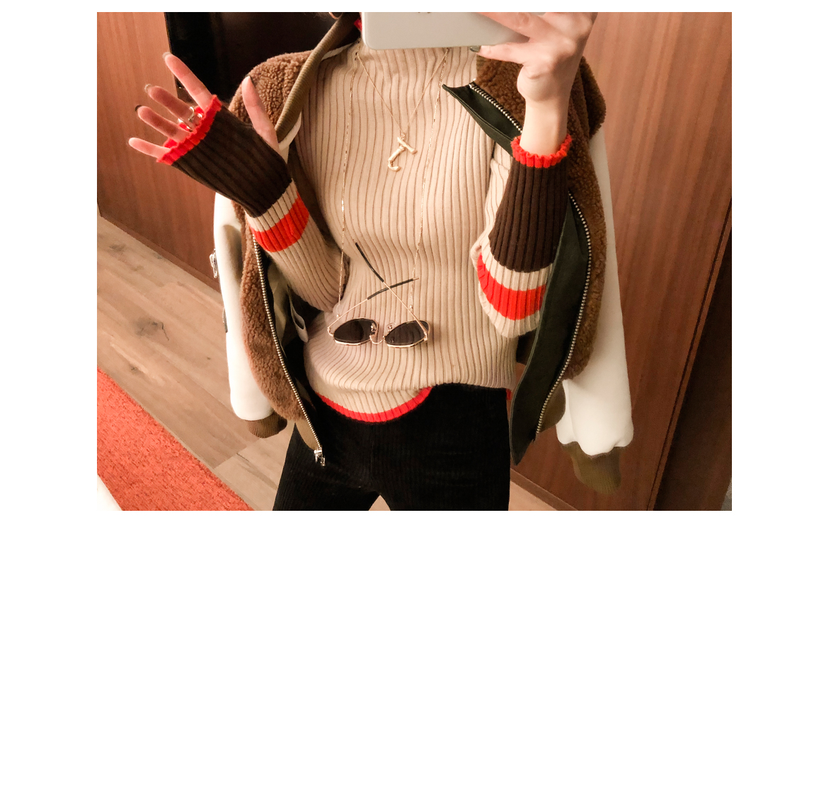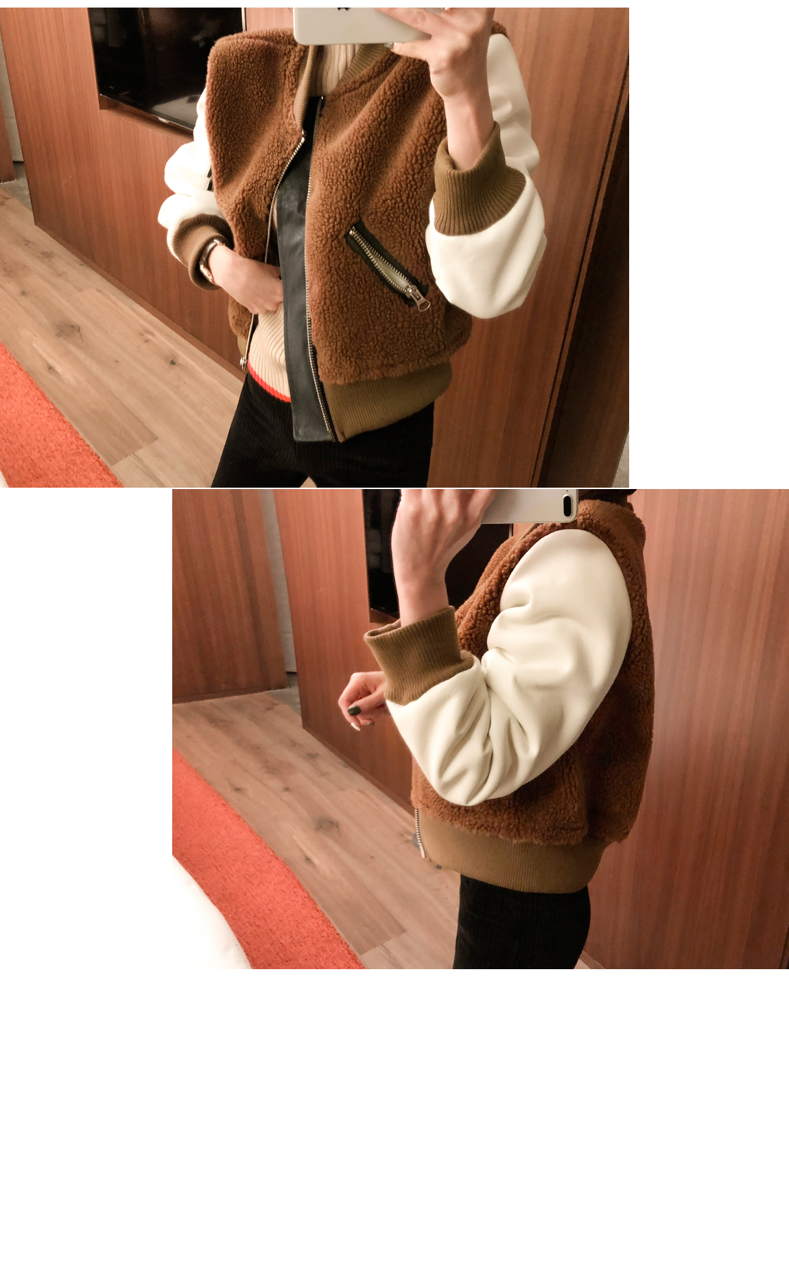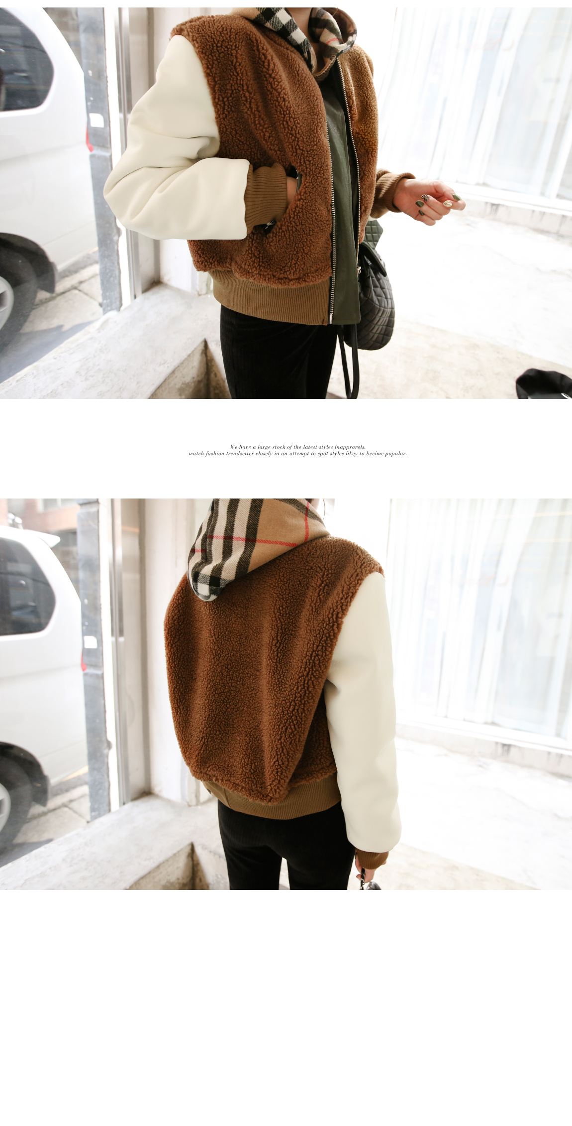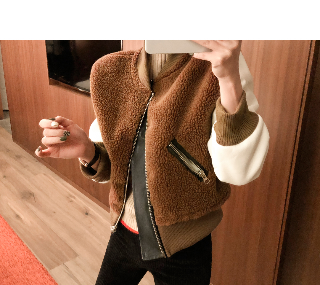 お互いに他の素材と配色がトレンディなジャケットです