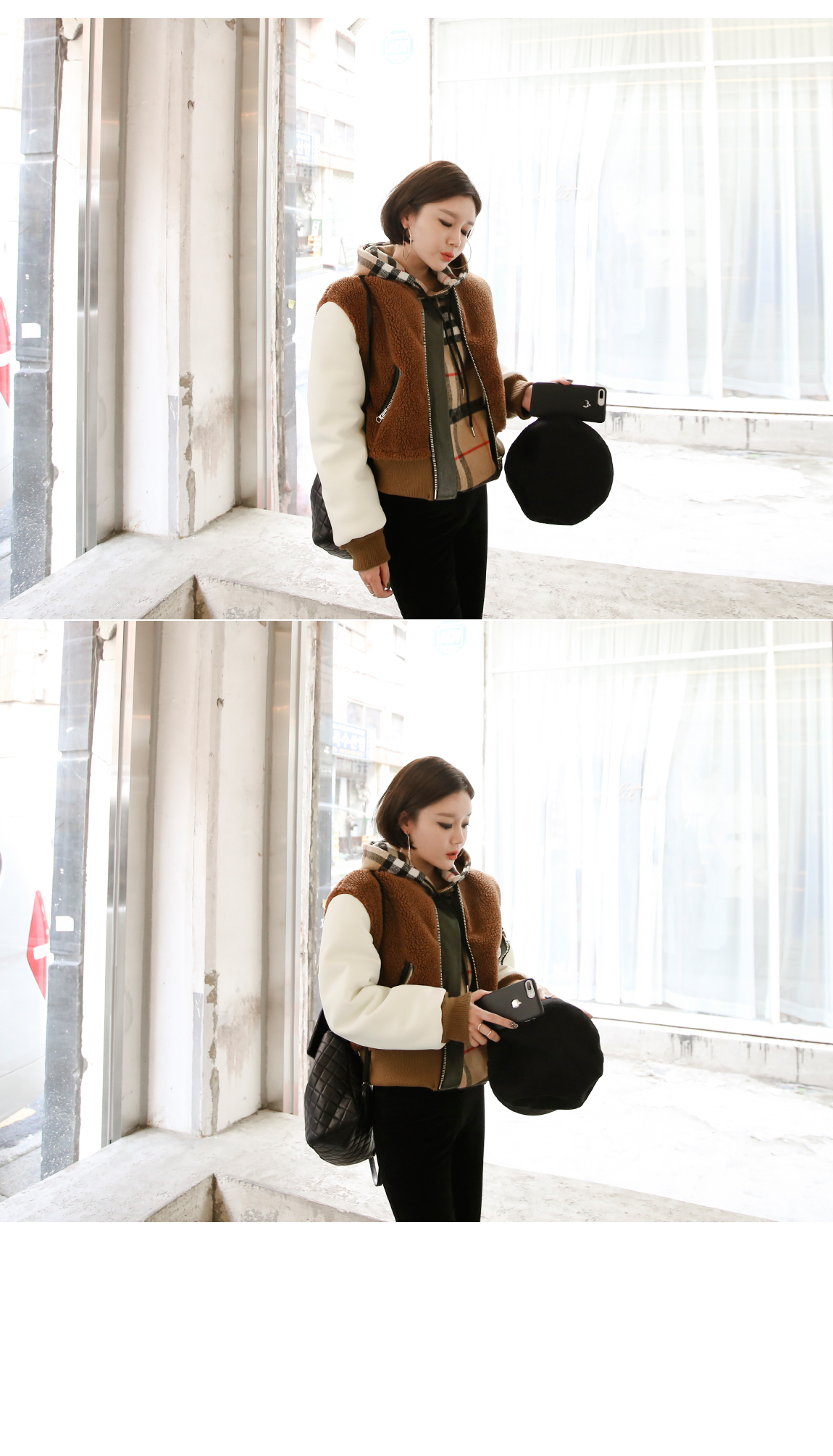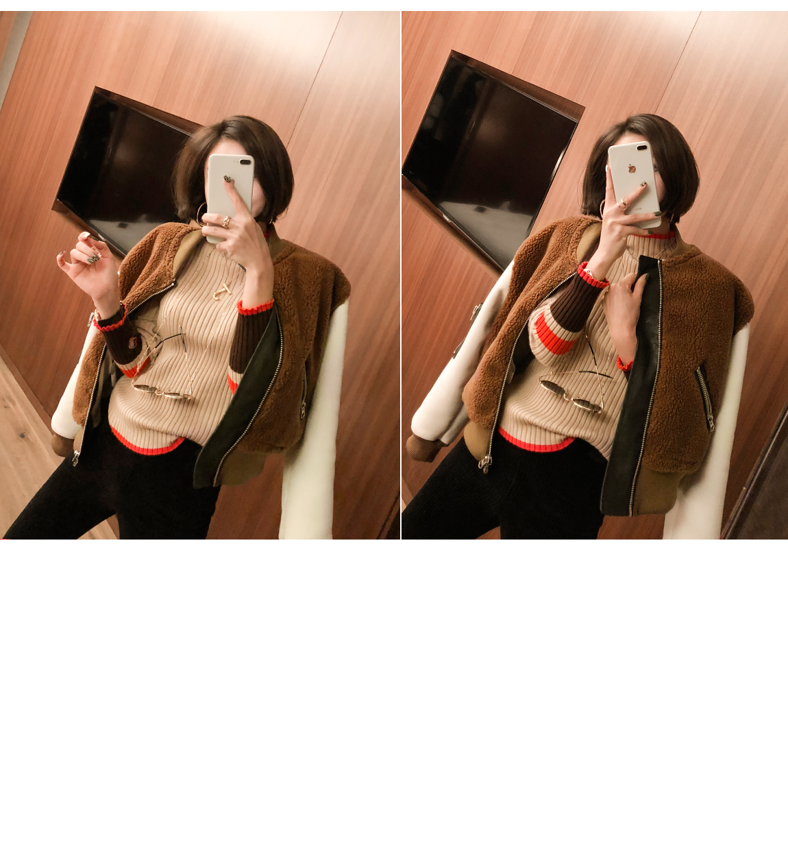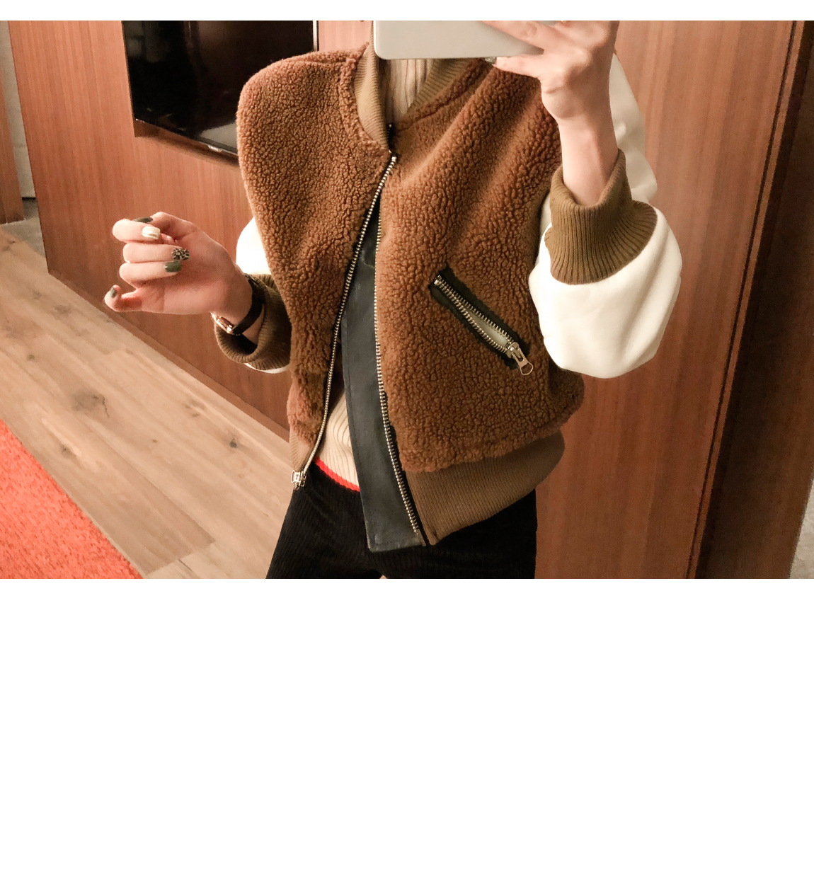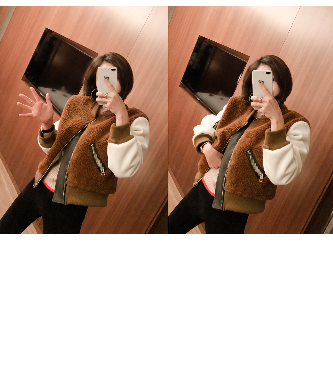 お互いに他の素材と配色がトレンディなジャケットです