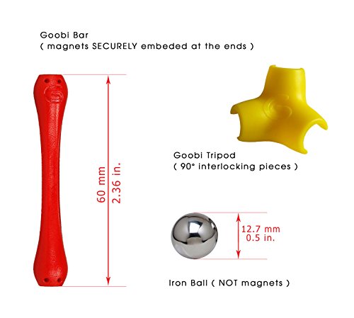 -. Binding : Toy -. Brand : Goobi -. EAN : 0850301001493 -. Feature : Awards: Creative Child Magazine Top Toy of the Year | Seal of Excellence | Creative Play of the Year | Preferred Choice Award / Goobi 110 piece set includes: 56 bars, 33 balls, 21 tripods (90° interlocking pieces) and a 32 page illustrated instruction booklet, also available online / Valuable kit for a STEM learning curriculum / Strong attractions in an assortment of vibrant rainbow colors / Meets ASTM (USA) and EN71 (EU) toy safety standards | For ages 3 and up -. IsAdultProduct : 0 -. Label : Goobi -. Manufacturer : Goobi -. Model : GL-110 -. MPN : GL-110A -. NumberOfItems : 1 -. PackageQuantity : 1 -. PartNumber : GL-110A -. ProductGroup : Toy -. ProductTypeName : TOYS_AND_GAMES -. Publisher : Goobi -. Studio : Goobi -. Title : Goobi 110 Piece Construction Set with Instruction Booklet | STEM Learning | Assorted Rainbow colors -. UPC : 850301001493