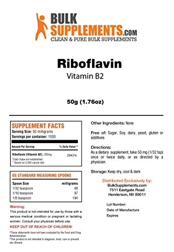 BulkSupplements Pure Riboflavin (Vitamin B2) Powder (50 grams)