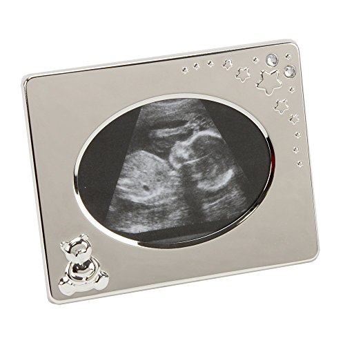 -. Feature : Beautiful silver baby scan frame from Haysom Interiors. / A lovely gift idea for someone expecting a new baby. / Decorated with a cute bear and star detail. / Holds a 4" x 2.5" photograph. Free standing only, not suitable to be wall hung. / Overall measurements when standing are 5" x 4".