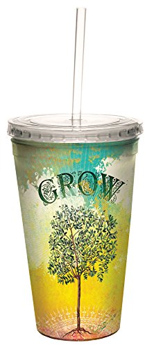 Tree-Free Greetings 35595 Angi and Silas Tree Grow Double-Walled Cool Cup with Reusable Straw, 16-Ounce
