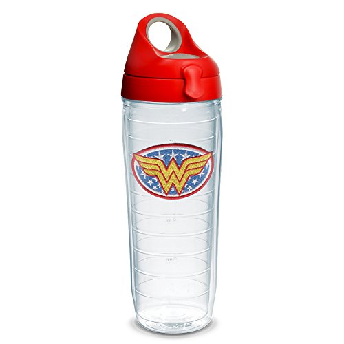 Tervis Warner Brothers Wonder Woman Emblem Water Bottle with Red Wb Lid, 24oz, Clear