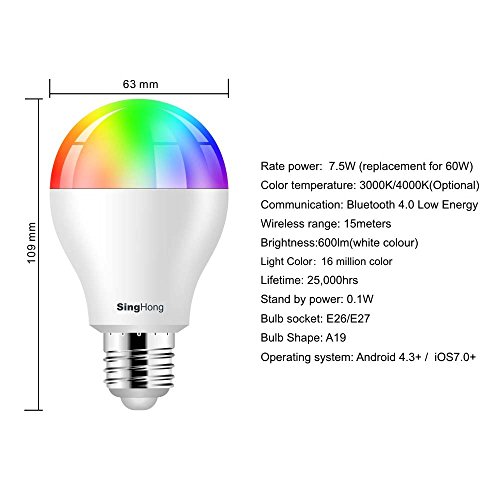 - Smartphone APP Controlled: Take control of your lighting from your Smartphone or Tablet. The Bluetooth app-SHLighting allows you to control a single bulb, or group bulbs and control them together. No controllers or hubs needed.